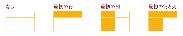 • 「最初の列」 ・・・ 左端の列が見出しのセルになります。