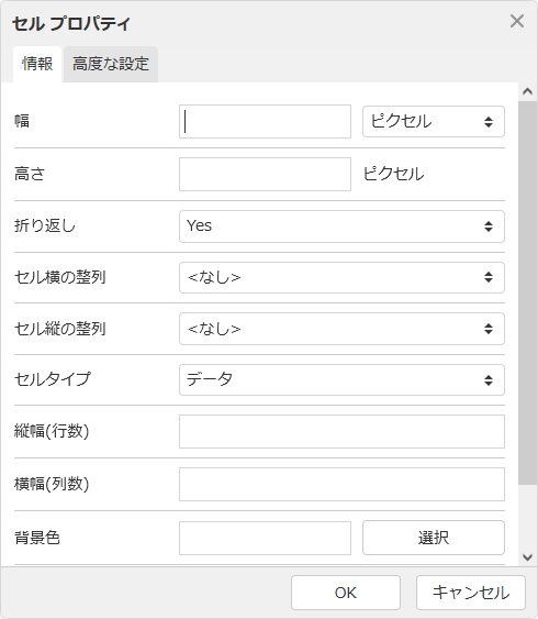 セルタイプ セルのタイプを選択します。「データ」を選択すると通常(td)のセルになり、「見出し」を選択すると見出し(th)セルになります。