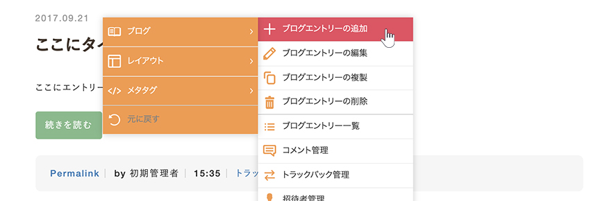 ブログを使って新しいエントリーを追加します。