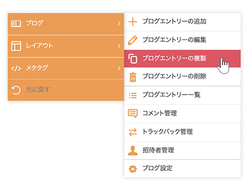 • エントリーを複製する場合は[ブログエントリーの複製]