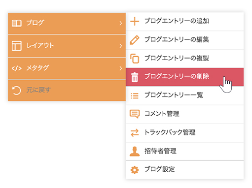 • エントリーを削除する場合は[ブログエントリーの削除]