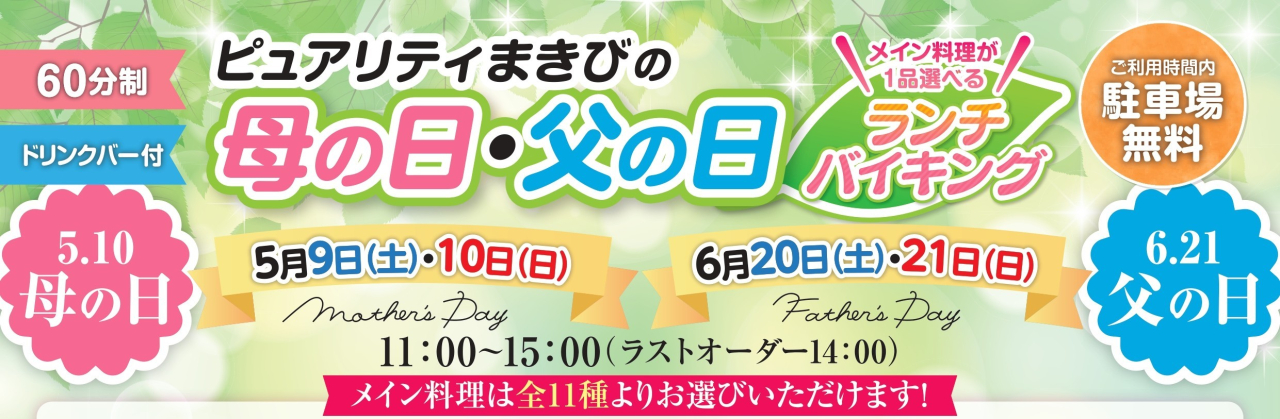 ゴールデンウィーク期間限定で、毎年好評のランチバイキングを開催いたします。