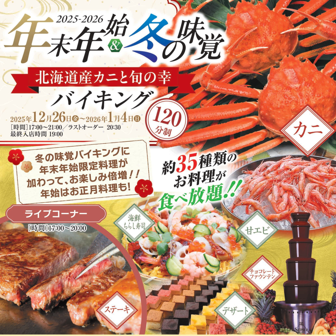 【夜】冬の味覚バイキング北海道産カニと旬の幸 期間2025.11.1(土)~2026.3.1(日)