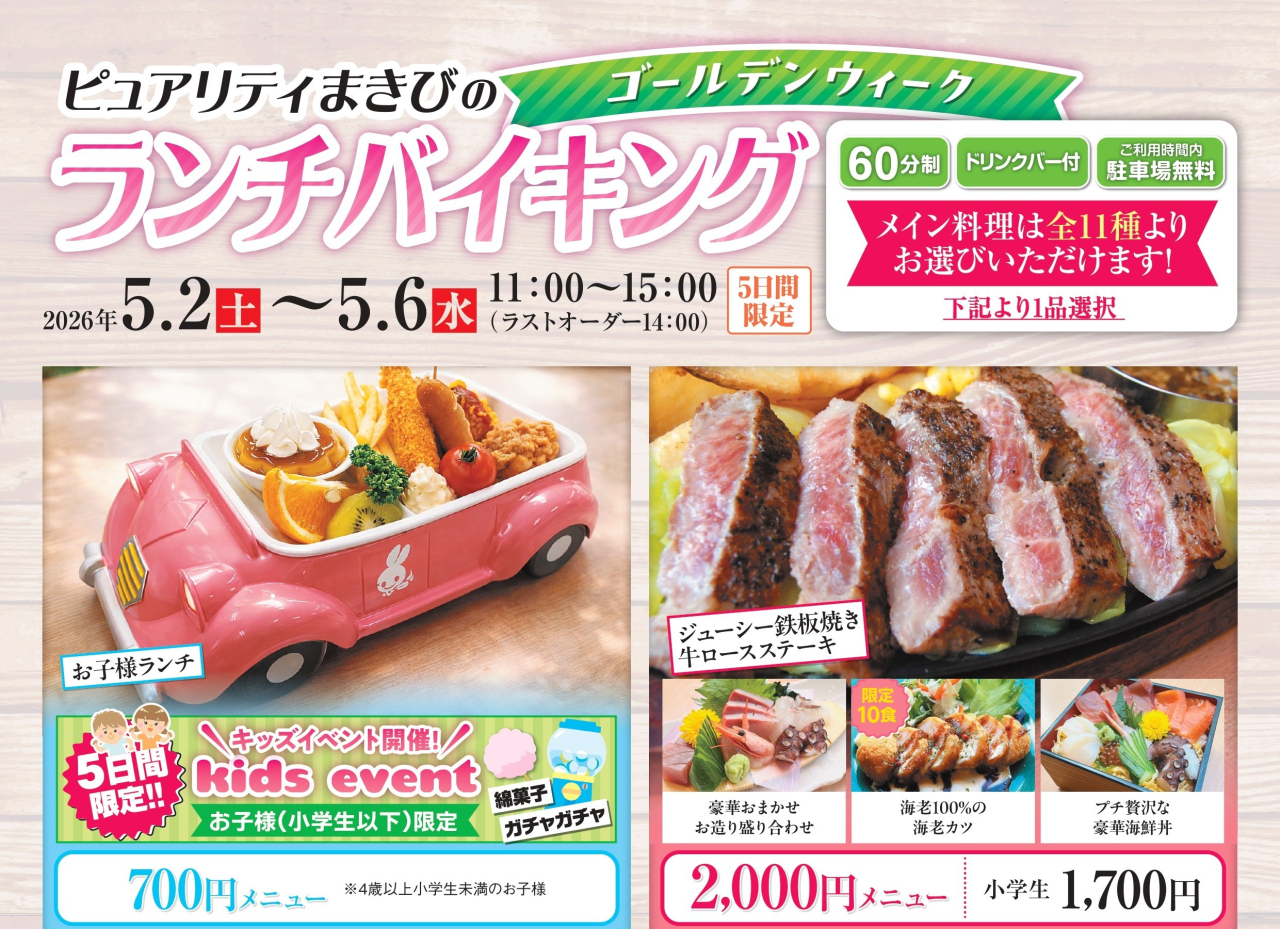 ピュアリティまきびでは、選べるメイン料理とランチバイキングをお楽しみいただける特別ランチをご用意しました。